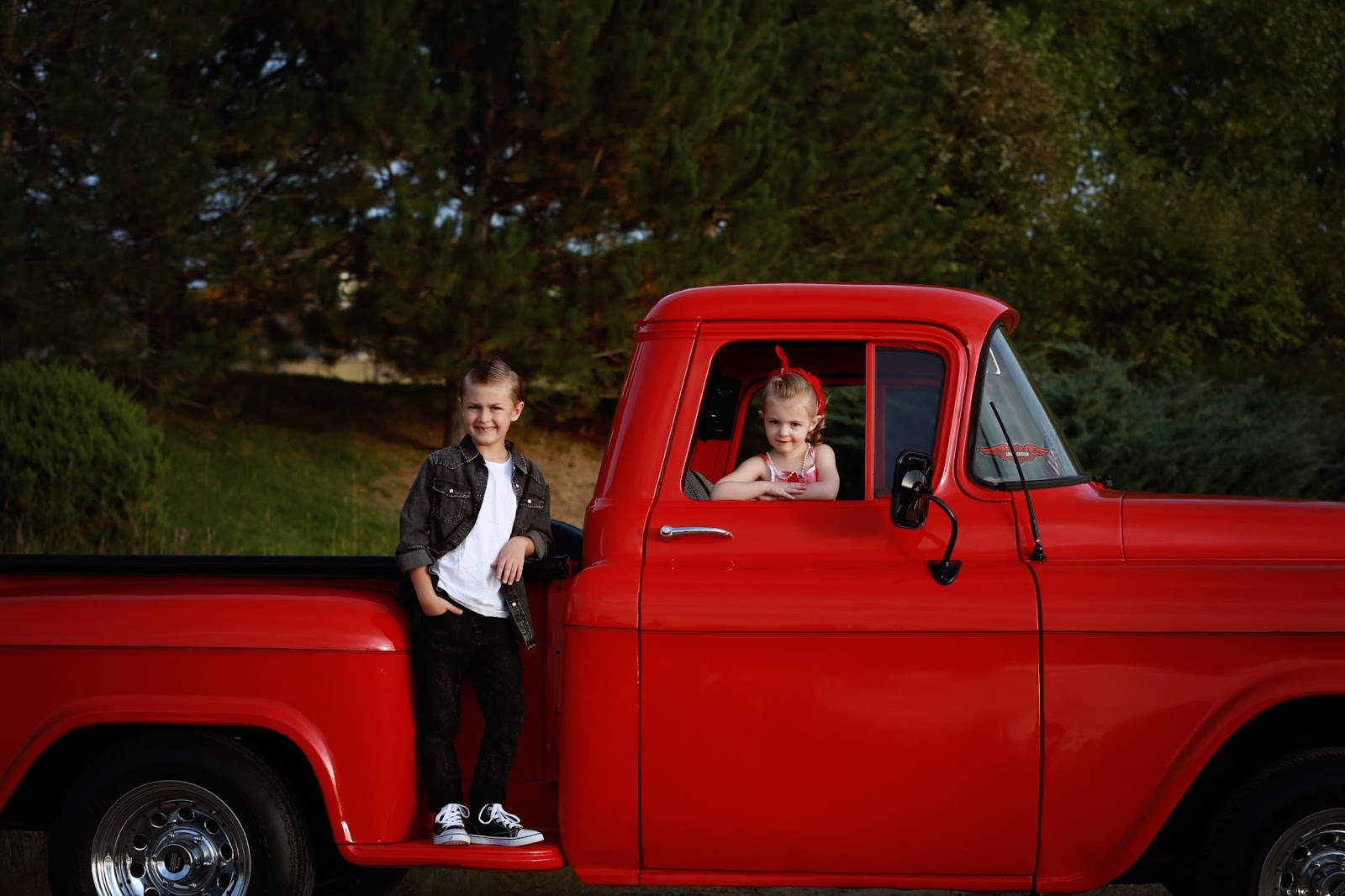 Look friends, I am a complete sucker for photos and I LOVE themed photoshoots. Luckily my amazing friend and photographer also loves a good theme! So when I approached Krista with the idea to use my daddy’s 1959 Chevrolet Pick Up and dress my kids up, she was on board! I won’t bother you with too many details, I know you are just here for the pictures. They are AMAZING!