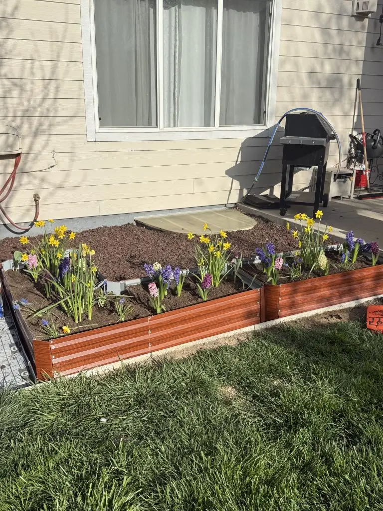 May brought a welcome end to the longest school year. I am getting to be old and grumpy in these last years of teaching. I have to figure something out. Not a ton was done, but I did get these bulb flower beds in and learned to bake bread and then we got to see Lilo & Stitch, so that was a win!