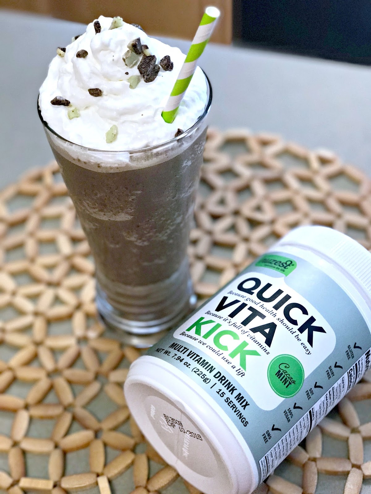 Ice, Cacoa Mint Quick Vita Kick and milk blended well, is all I needed to get going for the day. I used a cup of ice, 2 scoops of the QVK and 1 cup of 2% milk for the perfect healthy mint chocolate shake. It really is healthy too! It has 170 calories, 6g of fat, 17g of carbs and 14g of protein total. It is not as low carb as I prefer, but it is much better than that bowl of sugary cereal that I was about to consume.