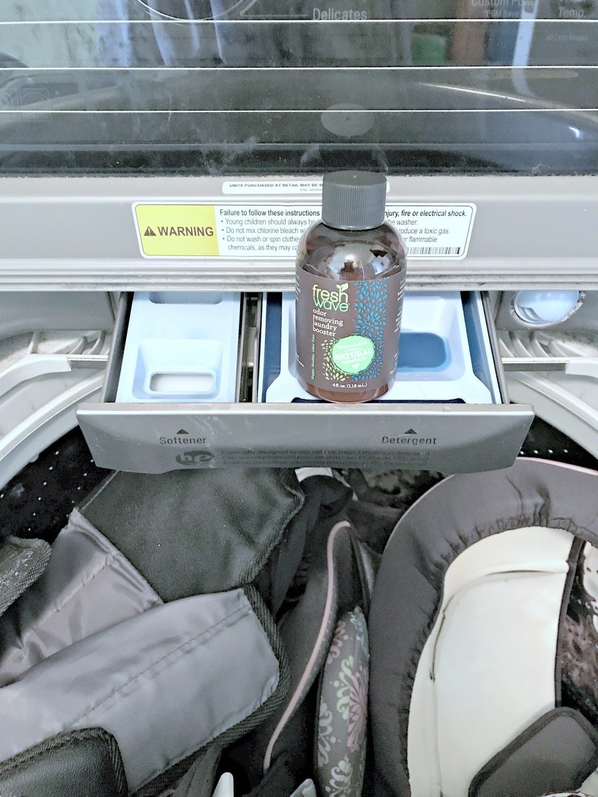 Kids are gross. We all know this. We also know that they are always hungry and so combine gross and hungry with their carseats and you get a hot mess. I make a point to wash the carseats at least every 6 months, but I try to do it more. In my vehicle, these are probably the dirtiest thing and they can smell, so I make sure to use an odor remover like FreshWave® Odor Removing Laundry Booster. I have tried other odor removers, but they just mask the smell. FreshWave actually removes the smell. Once my kids were back in their clean carseats they were sniffing them and telling me how good they smelled. As always consult your car seat manual to see if your carseats can be washed.