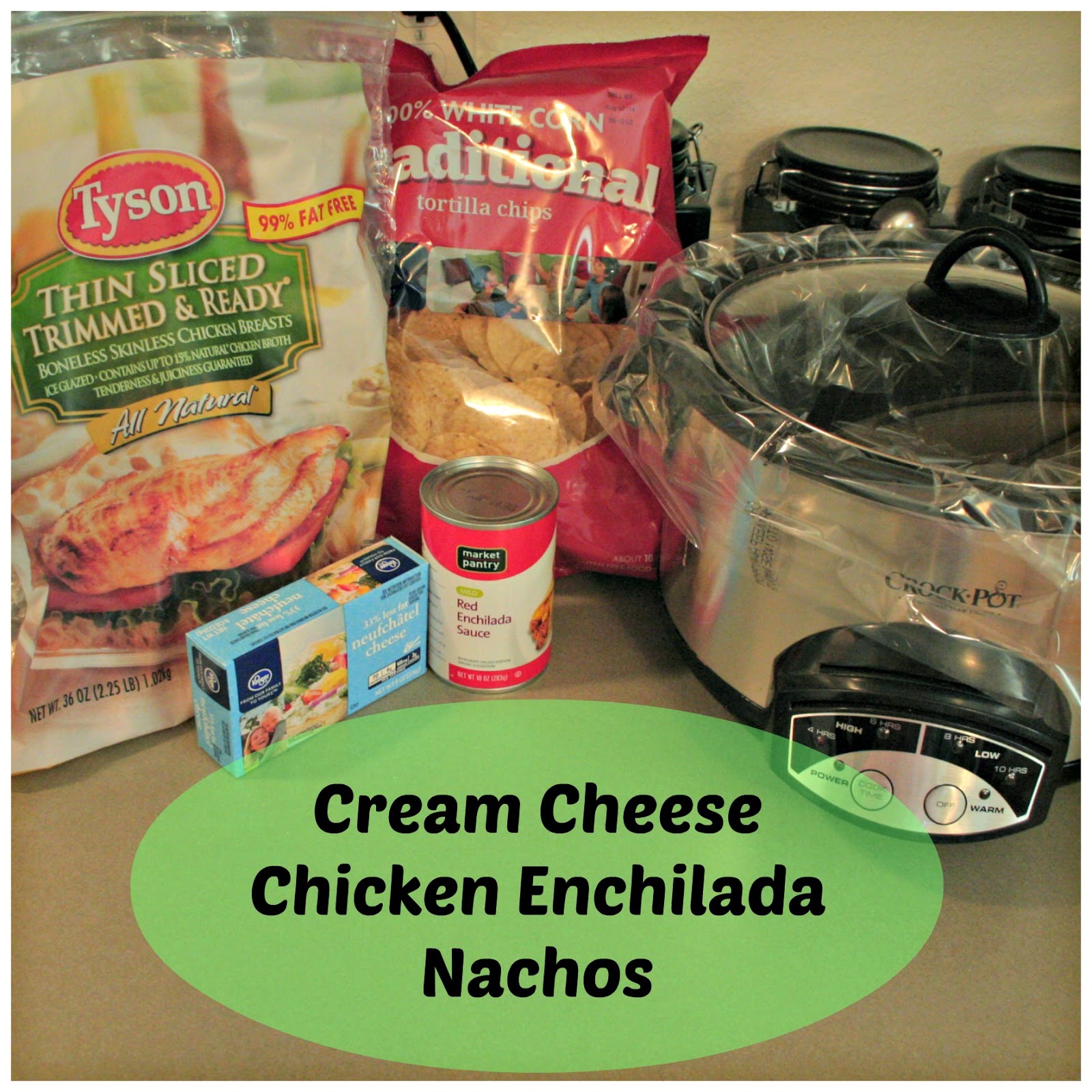 - Place chicken in crock pot, pour the can of enchilada sauce over chicken, cover and let cook on medium for 4-5 hours.