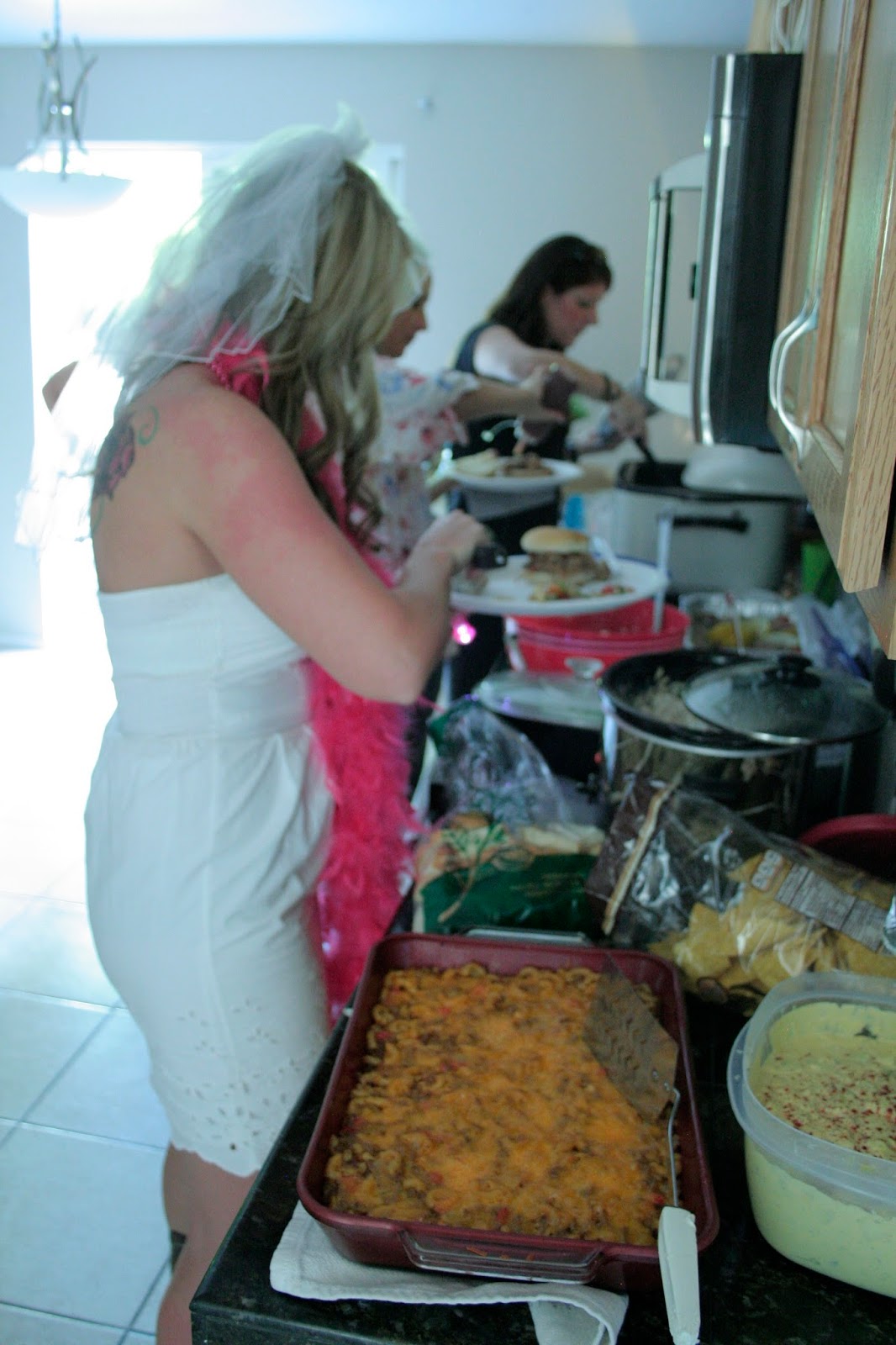 To preface this we decided to do a couple things with the food. First Bridesmaid #2 rocked the smoker and we had amazing BBQ brisket sandwiches. Second, we asked that each guest bring their favorite side to share along with a printed recipe for the bride to be to add to her recipes. My sister did not really want gifts so this was a perfect way for everyone to give and share at the same time.