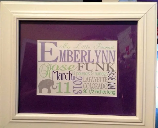 Kaylan and I came up with doing birth information for the kids. She collected some small tidbits of information, then asked for pictures of the kids rooms and went to work. So simple and easy. She sent me some proofs to edit and change as I deemed necessary and once we both loved the final product she framed them beautifully and sent them my way! The quality of everything was high class and she really took the time to find mats that matched well and frames that were extremely well built. I also loved how she took one of the airplanes from the pictures of Eyan’s room I sent her and put it into the picture.