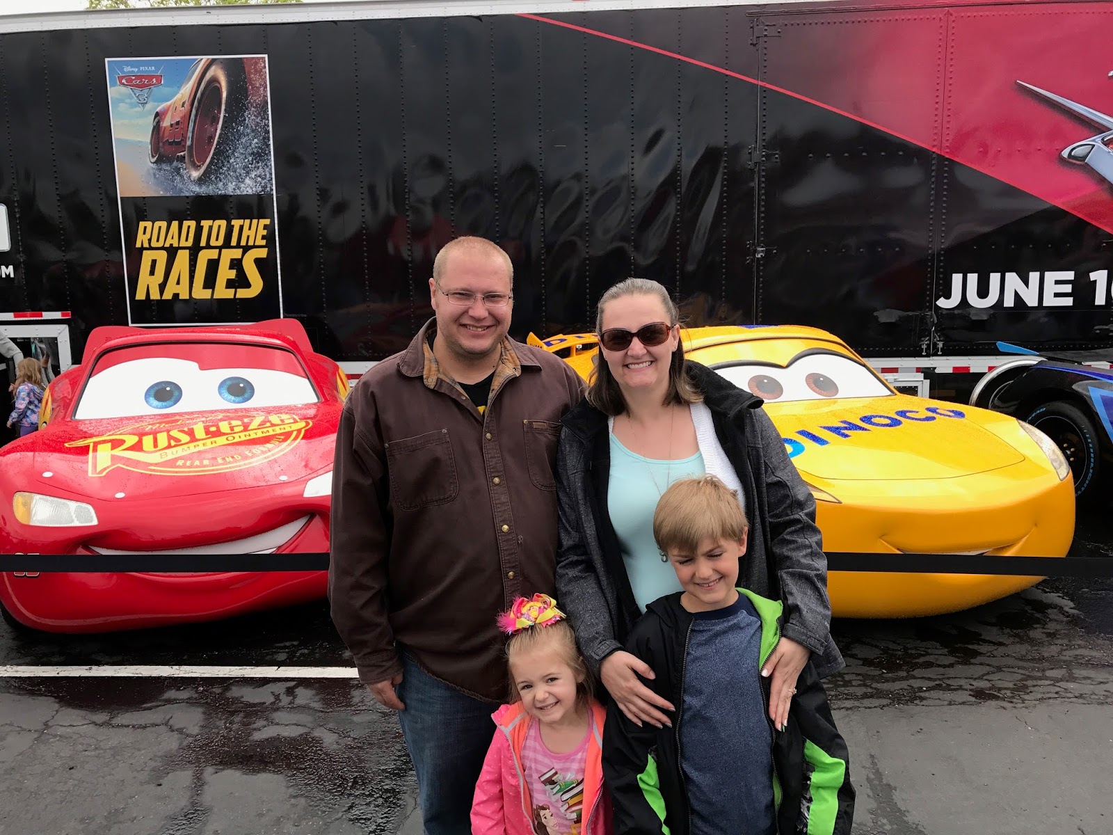 It was rainy, but the perfect day to really enjoy time with Lightning and his friends. We had the race day passes and were able to walk in and start taking in all that the tour had to offer.