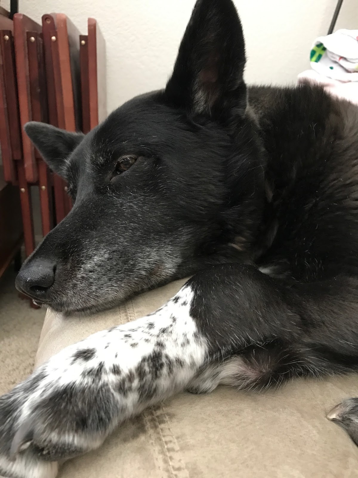 The amputation went amazing, she immediately felt better, was active and mobile. We had our dog back and were SOOO hopeful. These past 3 months, she has been back to her normal activities and in general doing very well. She had struggled to navigate our tile floors, so we modified by adding carpet runners. She also refused to stay off the stairs, the furniture and the fence to fight with the neighbor dog. We did our best to keep her contained and make sure that she was doing well in recovery, but even our best was not good enough. On Saturday, my husband got up with the dogs to feed them, let them outside and then come back to bed. She went downstairs, ate, went outside and came back in. She laid down and never got back up.