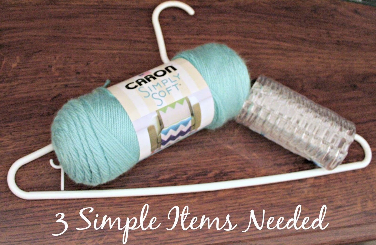 What is great is that you probably have most of these items around the house, but if you do not, you can easily grab them at your local box store.  I had the clothes hanger and then purchased the yarn on clearance and the shower rings from Wal*Mart.  I actually spent $3.00 but figured that if you had to purchase the yarn at regular price that you would spend around $5.00.  Not too shabby considering that scarf holders on Etsy are running around $40.00!