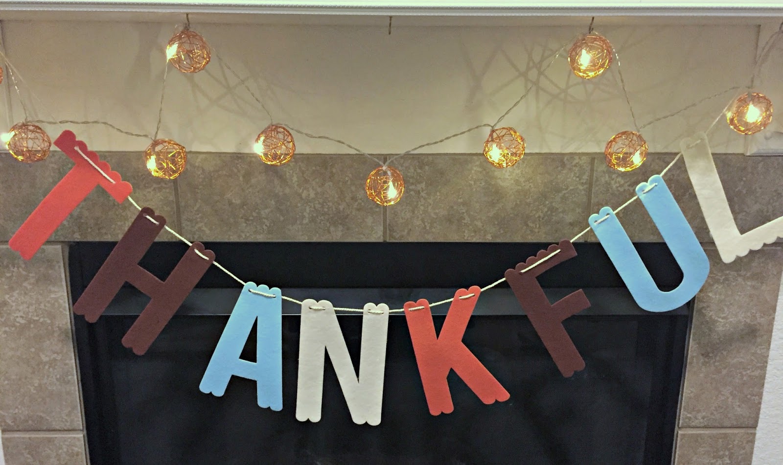 This felt banner was in the target dollar bins for $3.00. I purchased the ball lights and have used them for the last 3 of my mantle designs. I pretty much love the ambiance they create along with my flameless candles. Super relaxing!