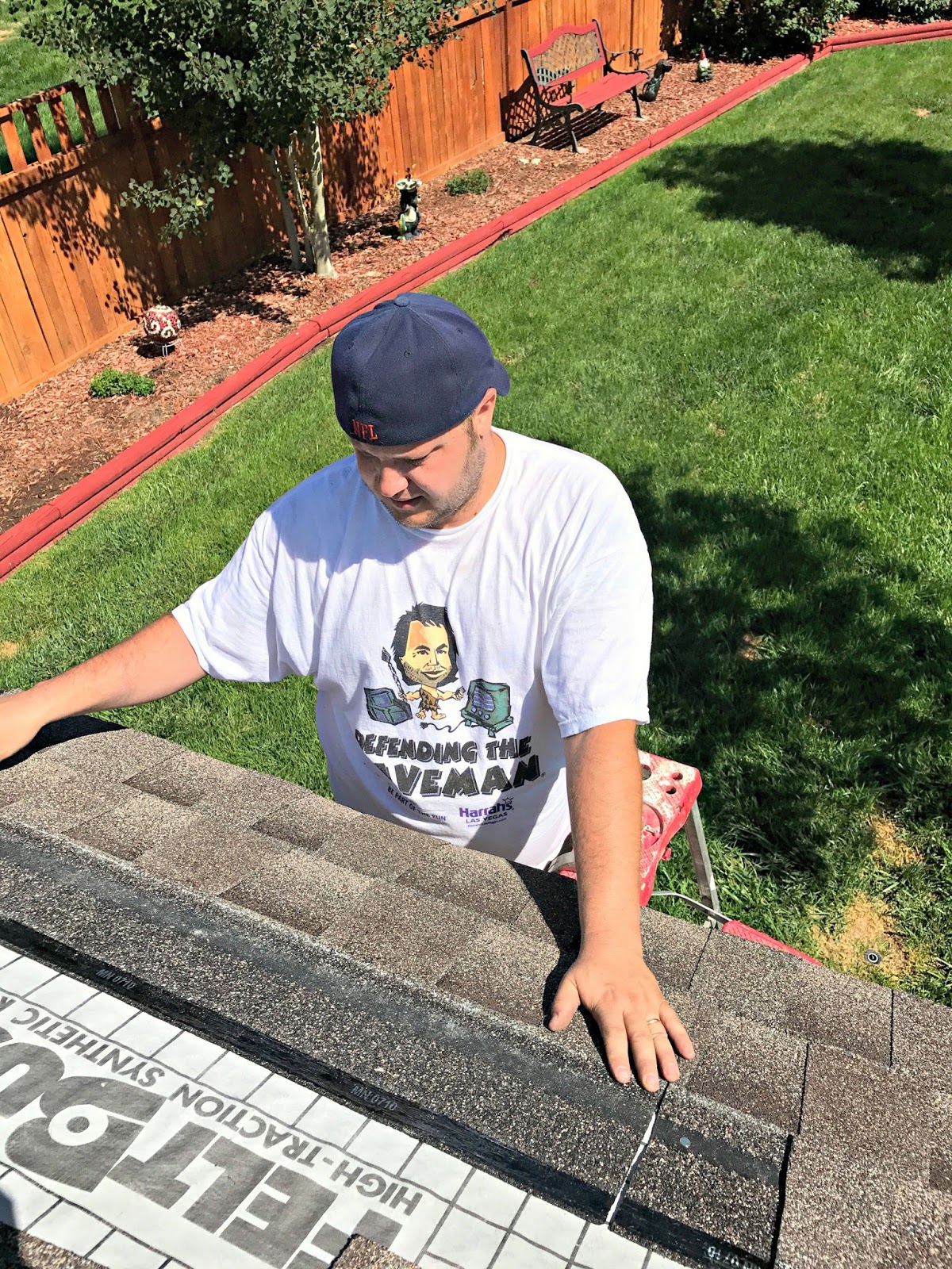 One thing that I forgot to mention is how important it is to wear protective gear. I had on old jeans, good sneakers, glasses, a hat and gloves for protection. Shingles are rough and sticky and you do not want to damage them as much as you do not want to damage yourself. Make sure to keep yourself safe and if you are working on a large project, do it with a partner and always spot someone on a ladder.
