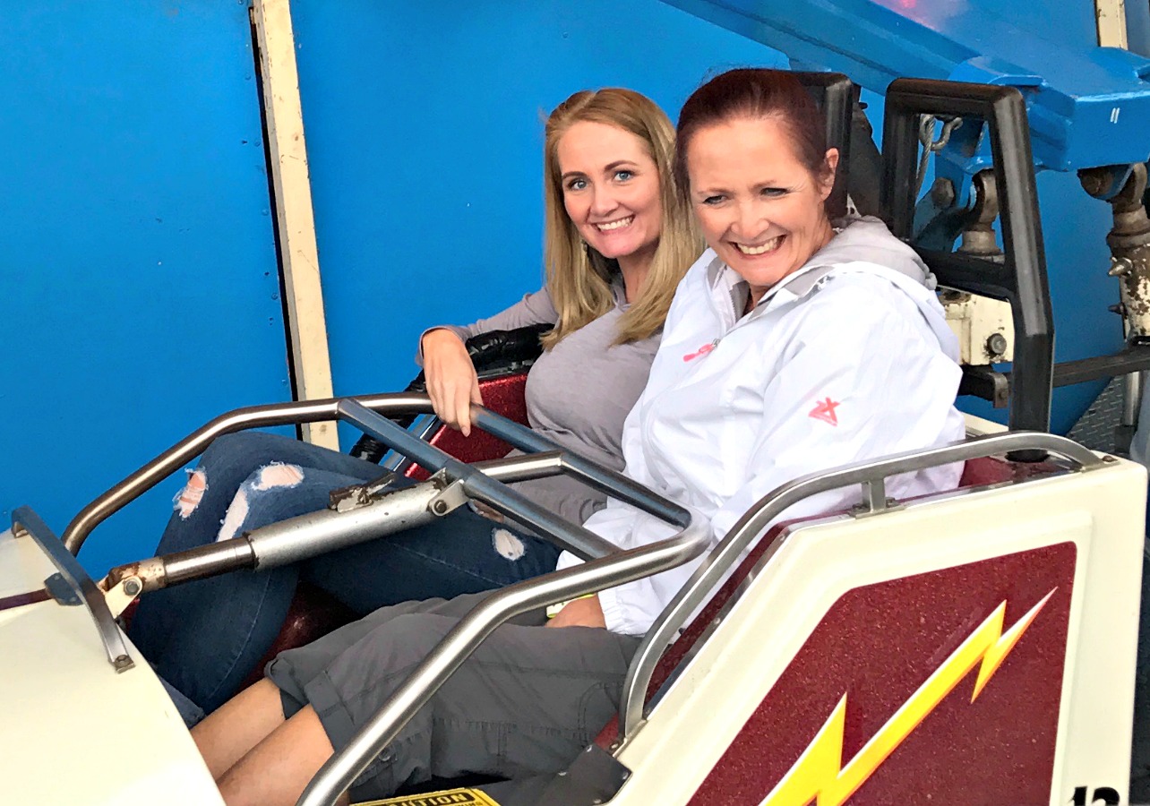 From there is was time for some adult rides. With the weather being a little less than cooperative, we did not get to ride a ton of the larger rides. We did have the VIP Rapid Rider passes and definitely put those to use though. Worth the money for sure. My mom had to ride the Thunder Bolt, which is her favorite ride. She was hysterical on this and we all laughed and cheered as she came around and around!