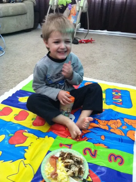 | Thanks Auntie for saving the day with the cake (notice the small round 1/2 eaten cake in the background by the knives) |