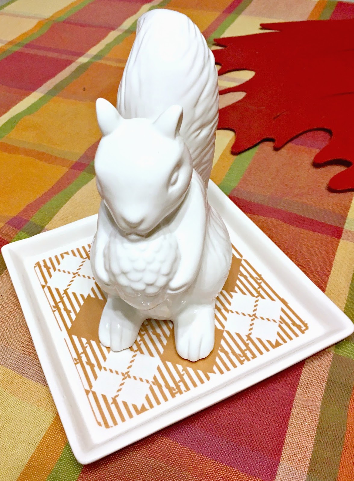 When I found the little ceramic animals in the Target bins I fell in love. They were $3.00 each and I knew that I wanted to add a little something to them so these little argyle coasters were a great way to add a little more flair. The coasters were only $3.00 as well!