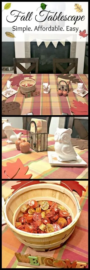 In March, after 10 years, the husband and I finally decided that it was time to buy a table that was family friendly and would last a long time. We found an amazing deal on our table and are so happy with the quality and look of it. Now that we have a new centerpiece in our home, I want to bring some festive decorations to it and decided to start with a simple and affordable fall table scape.