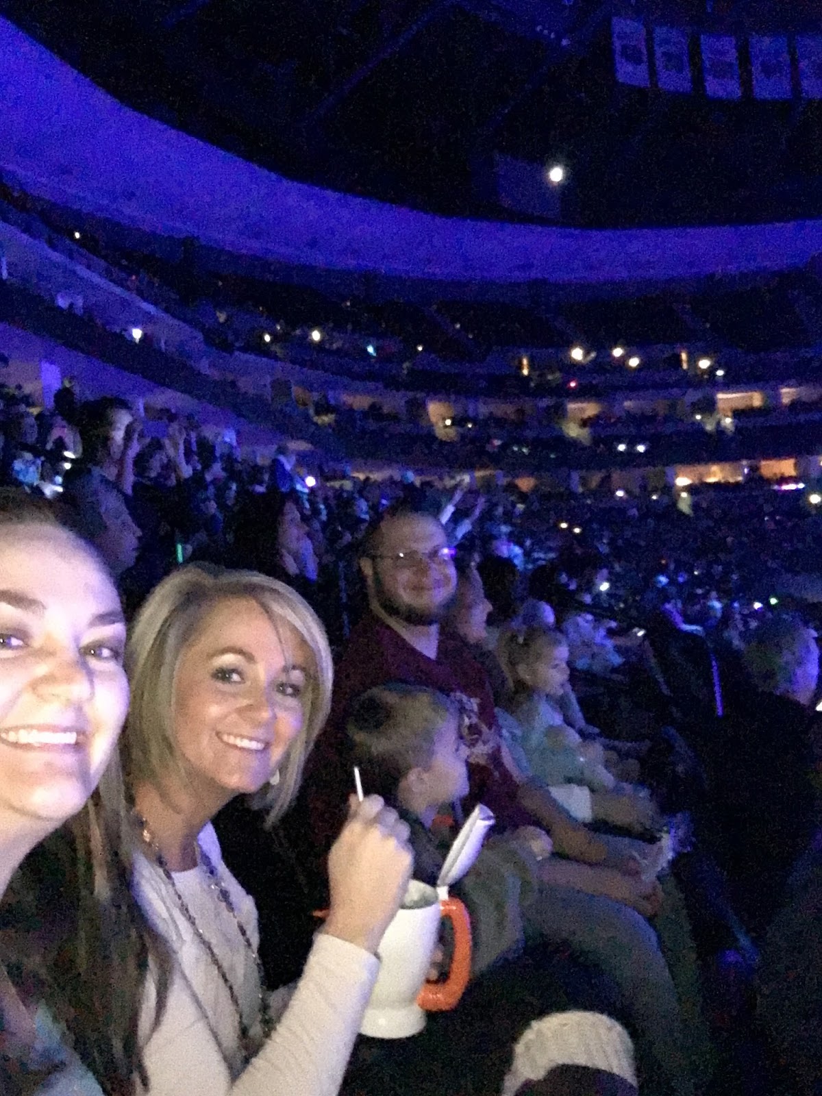 The lighting was terrible for my selfie camera lol but you can see that we piled right in. Our seats were pretty good. We were about 11 rows from the ice and on the side which actually worked out great because we had easy access in and out of the rows for bathroom breaks and snacks.