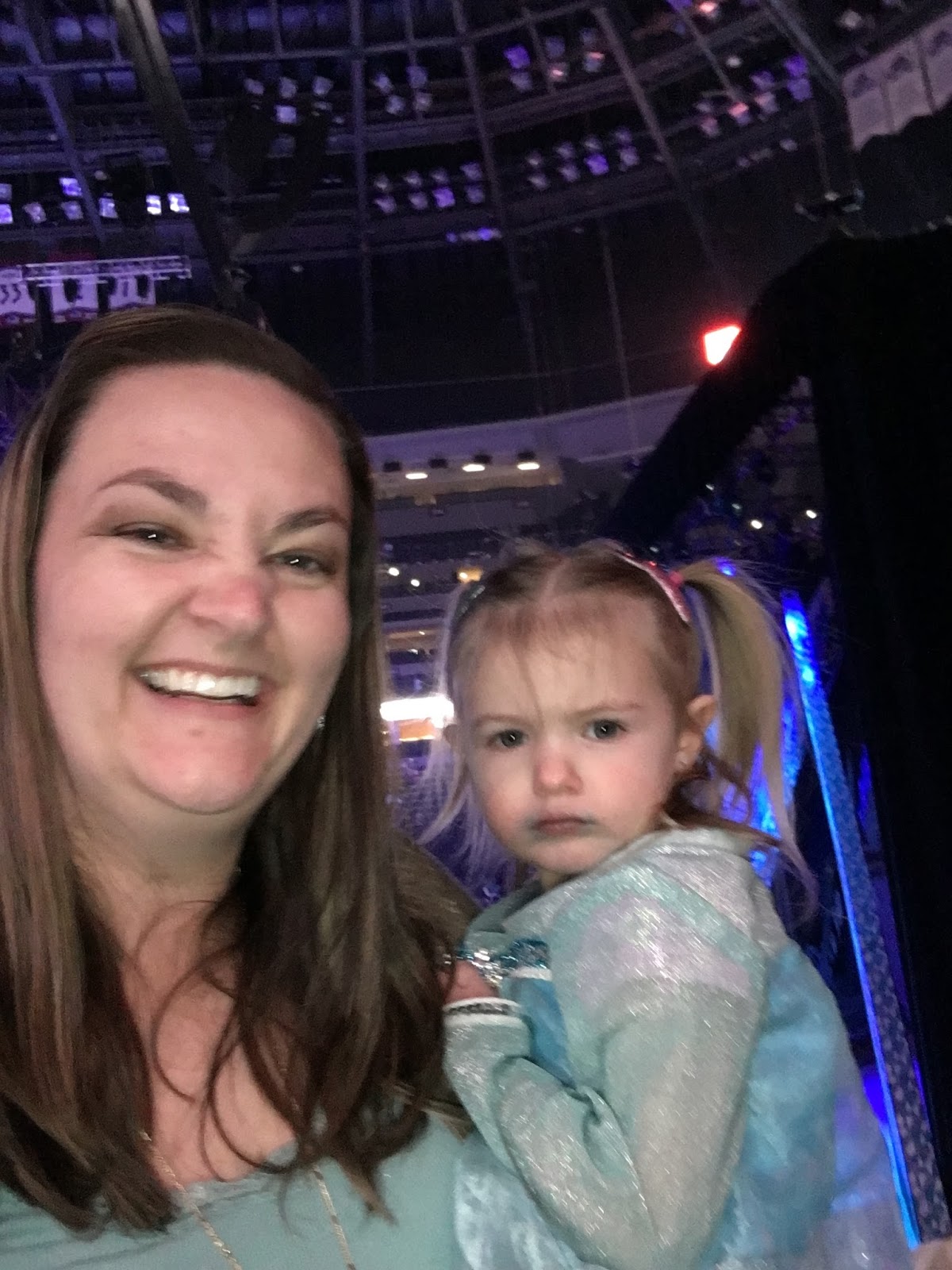 I mean you can clearly see her excitement here during intermission. She obviously was upset that her friends had to take a break. That blue snow cone was not enough to quell this sad little Elsa. As soon as the show started she was back to being crazy and happy