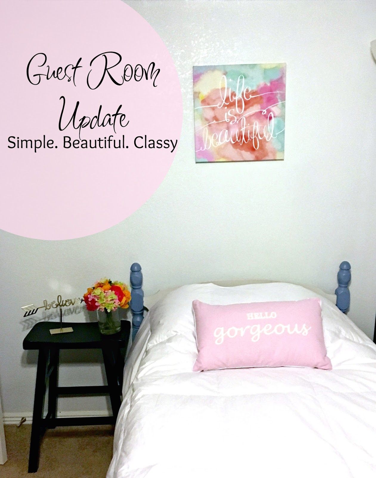 These simple decorative touches have brought a little happiness to our tiny little guest space and I hope that our future guest love the changes and feel welcome into our home.