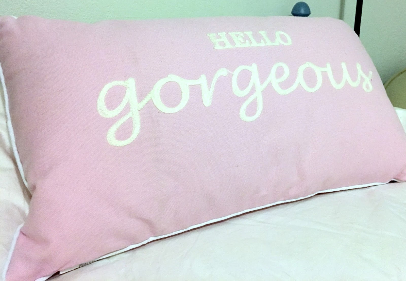 This pillow was a fun pick. I wanted a throw pillow that would feel welcoming and breed positivity. In fact the entire room idea was to make my guest feel happy, loved and encouraged, so this pillow was perfect!