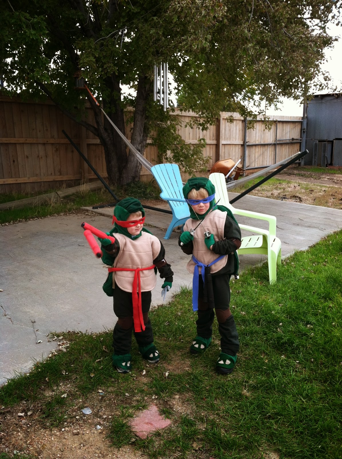 | Ralphael and Michaelangelo! I will be getting a better photo of my little man…he was too excited about those weapons |