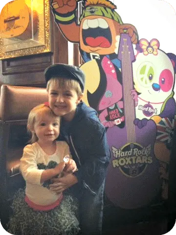 i like eating at hardrock i play the guitar and color roxtars in the activity books and caryns i eat the kids meals only
