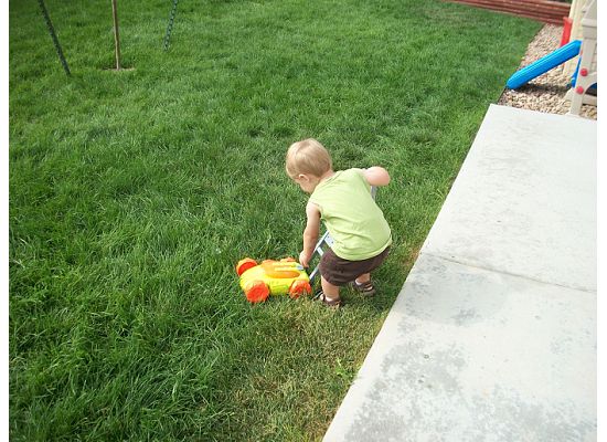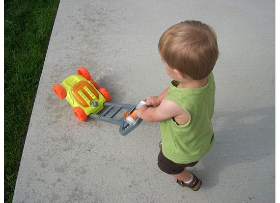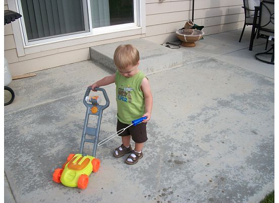 Can I just tell you how much my kid LOVES to be outside. He loves to chase the dogs, play in the dirt, swing and slide, and help his daddy with the yard work. He got this awesome bubble lawn mower for his birthday and we used this toy a TON.