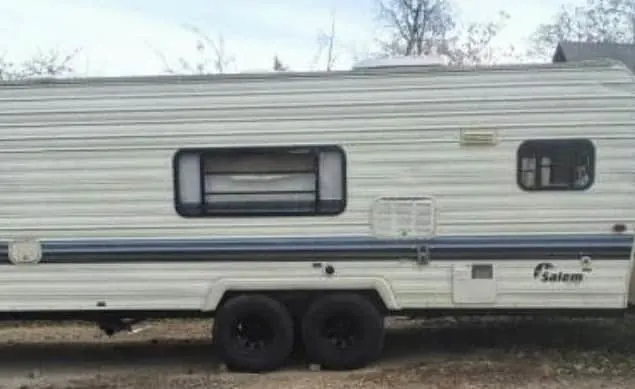 We found that there was some sort of a fire. Upon closer inspection we also found that the entire camper was tilted and that the rims and tires on the camper were what caused the fire…which shorted out much of the electrical and warped the entire floor. We also found out the fridge was not working properly and that the toilet was broken. Quickly this was becoming very expensive so we decided to just part it out.