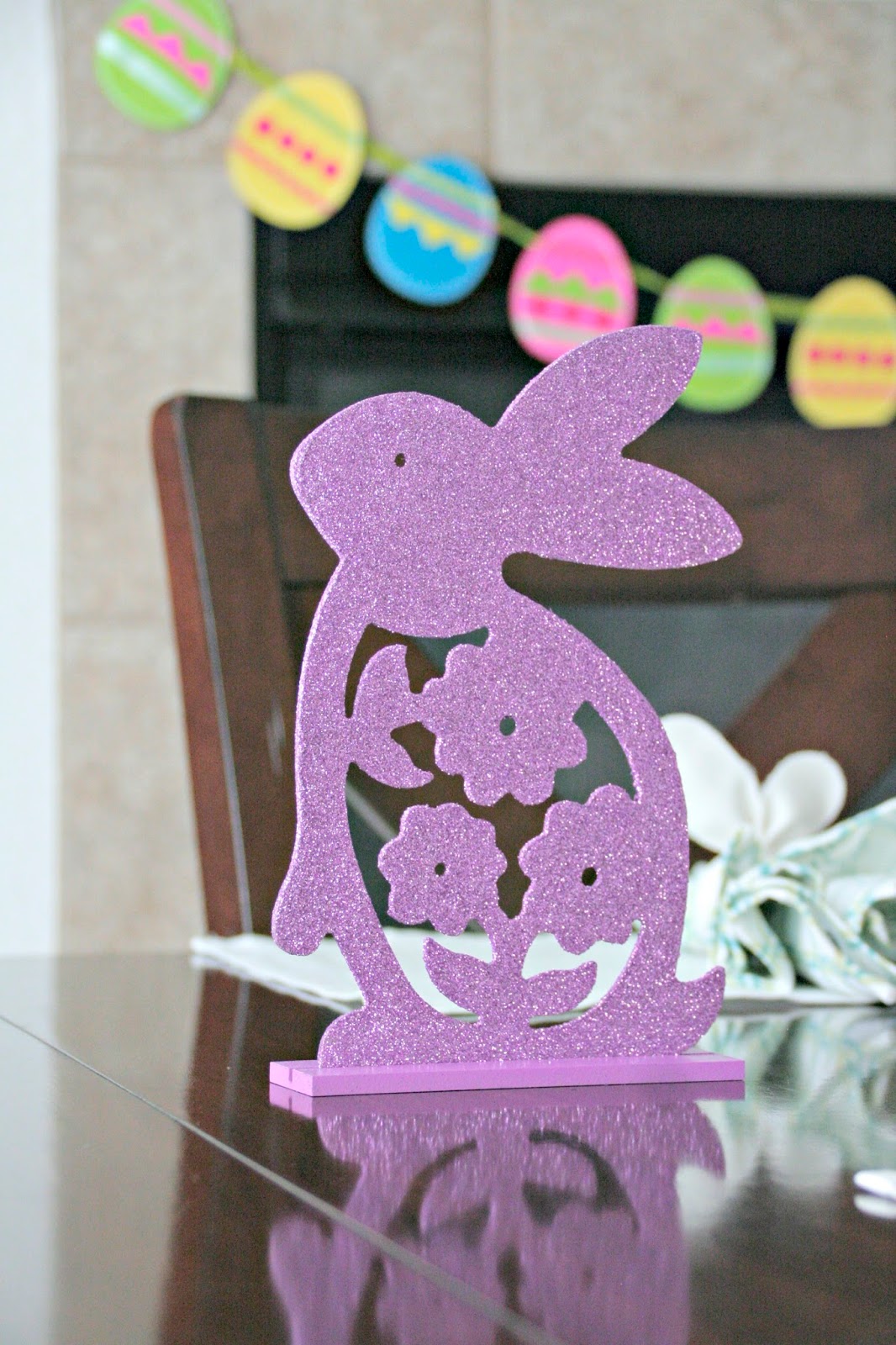 The glitter bunny had to come home with me. I have a soft spot for all that glitters, and so this guy easily worked his way into my cart at the dollar tree. Super cute, and adds that pop of sparkle that I love.