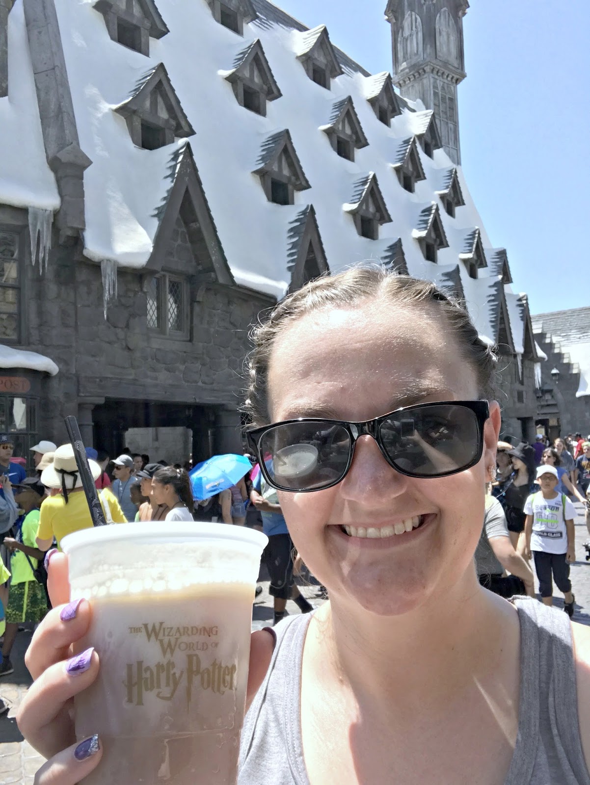 We could not fully experience Harry Potter Land unless we had a frosty Butterbeer. We ordered two and although they were definitely sweet, they were also super tasty and hit the spot on a hot day! Although we did not eat a meal in this portion of the park, the snacks and drinks that we did have were great. I also loved that they had a fresh fruit cart out and other people seemed to love that as well as it was busy the entire day!