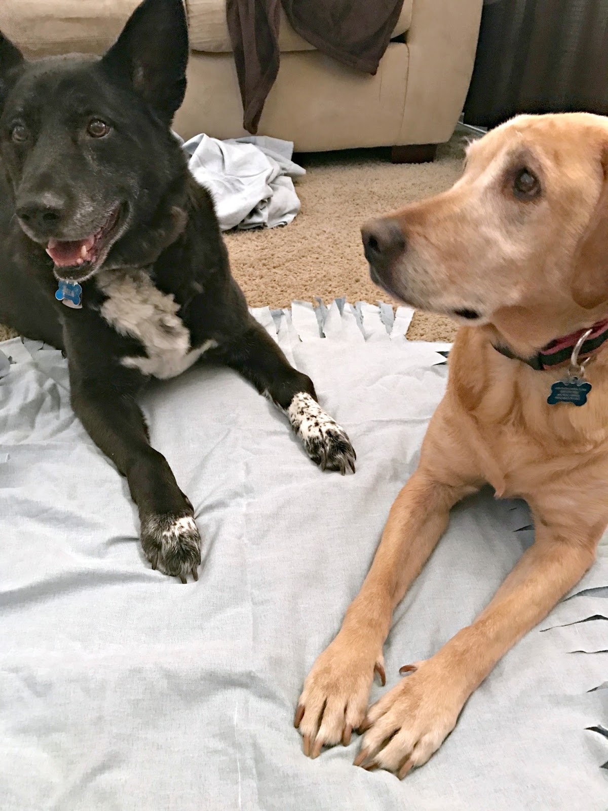 Voila! The bed, treats and party were ready and so were the pups! I think our other pup was a bit jealous that Mia was getting her very own pet bed for her birthday, so I am totally going to make one for the holiday’s for our other special girl. I love my pets and I want to treat them to a happy holiday season too!