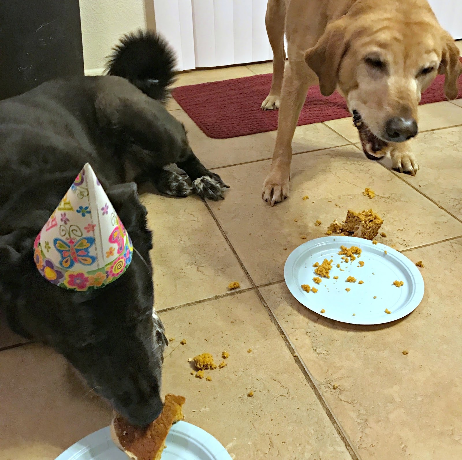 We then served up the cake and true to form, Mia took her time savoring every single bite, while Lily tried to eat the entire piece of cake in one bite. It was pretty fun to watch our puppy’s eat the cake!