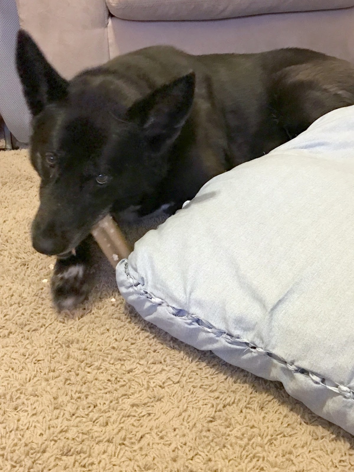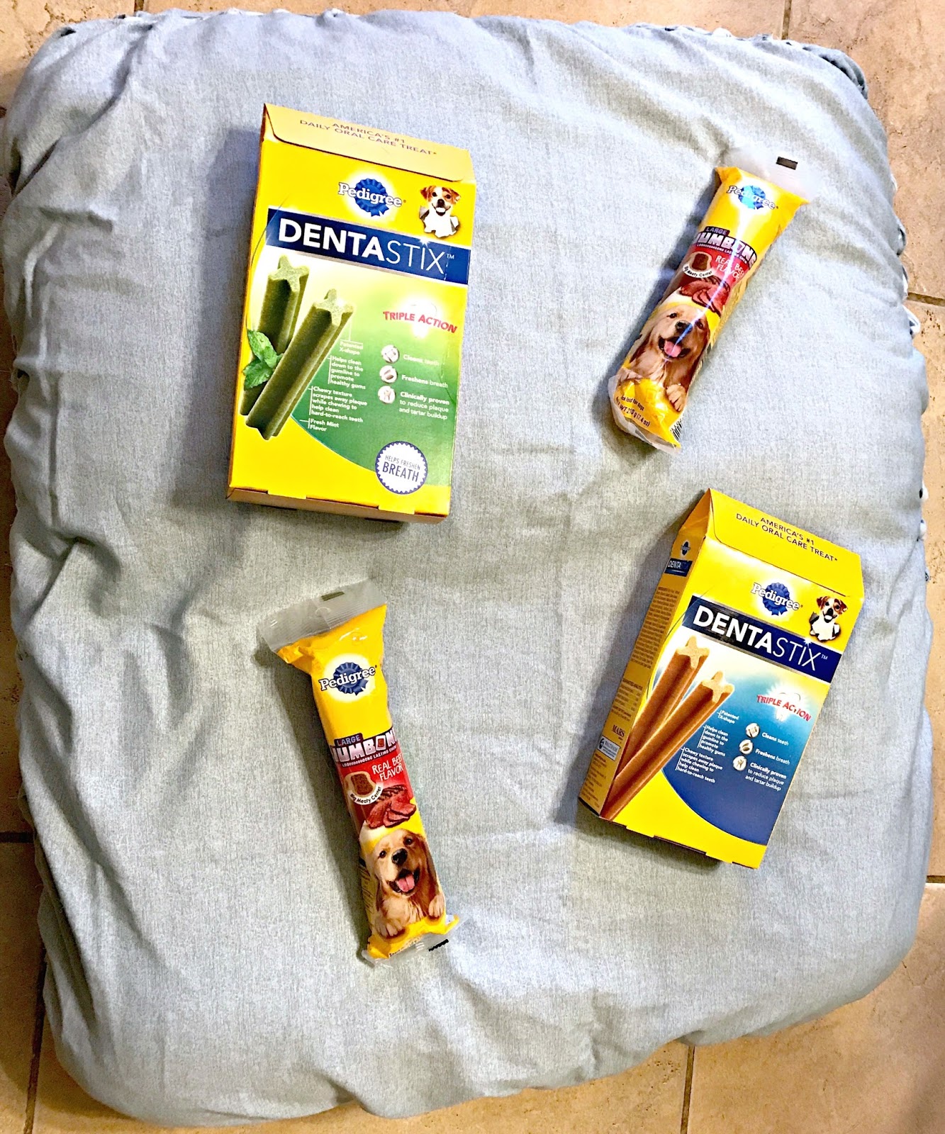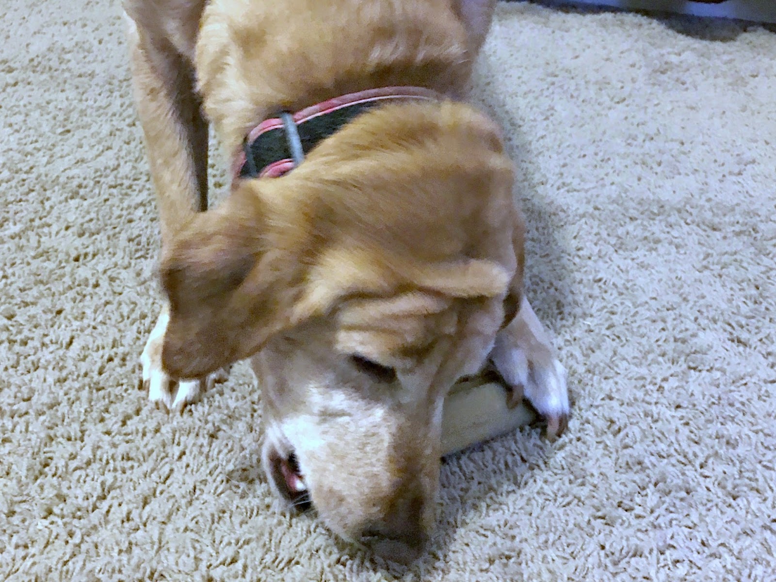 After the cake it was treat time and the girls knew exactly what was coming. Those PEDIGREE® JUMBONE™ treats are their favorites. Both girls grabbed their bones and went to their favorite places in the house to start snacking. Lily of course walked around and around laying down and chewing her JUMBONE™ and then getting up and moving and repeating. This girl is silly.