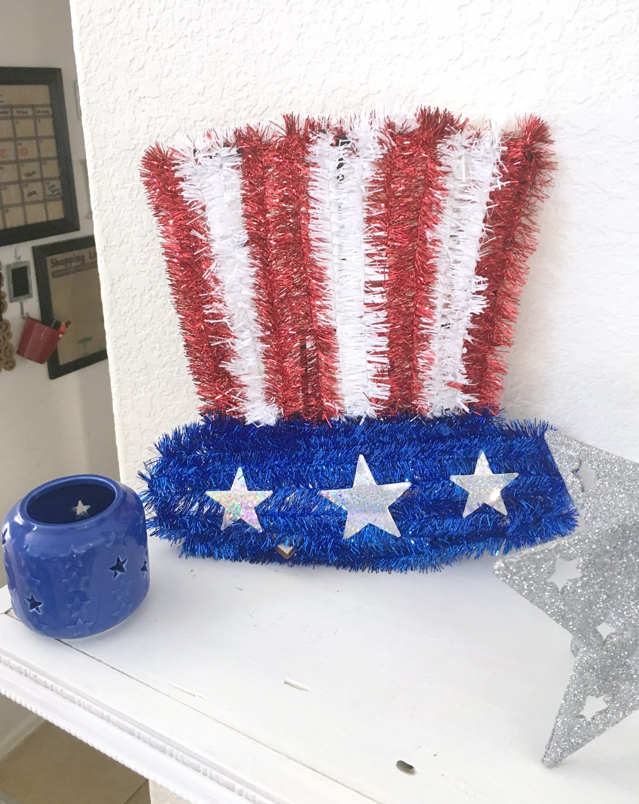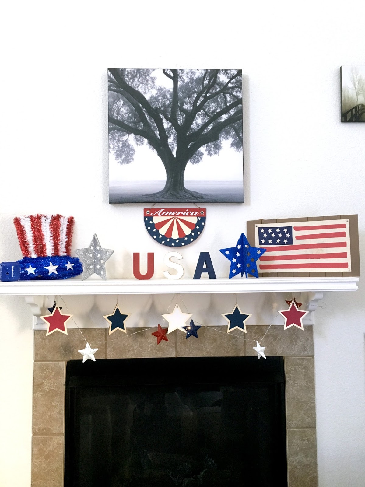 I love decorating my home on a budget and giving it that patriotic look this season. I am sad that I did not put this together a couple weeks ago because I really am enjoying this look!
