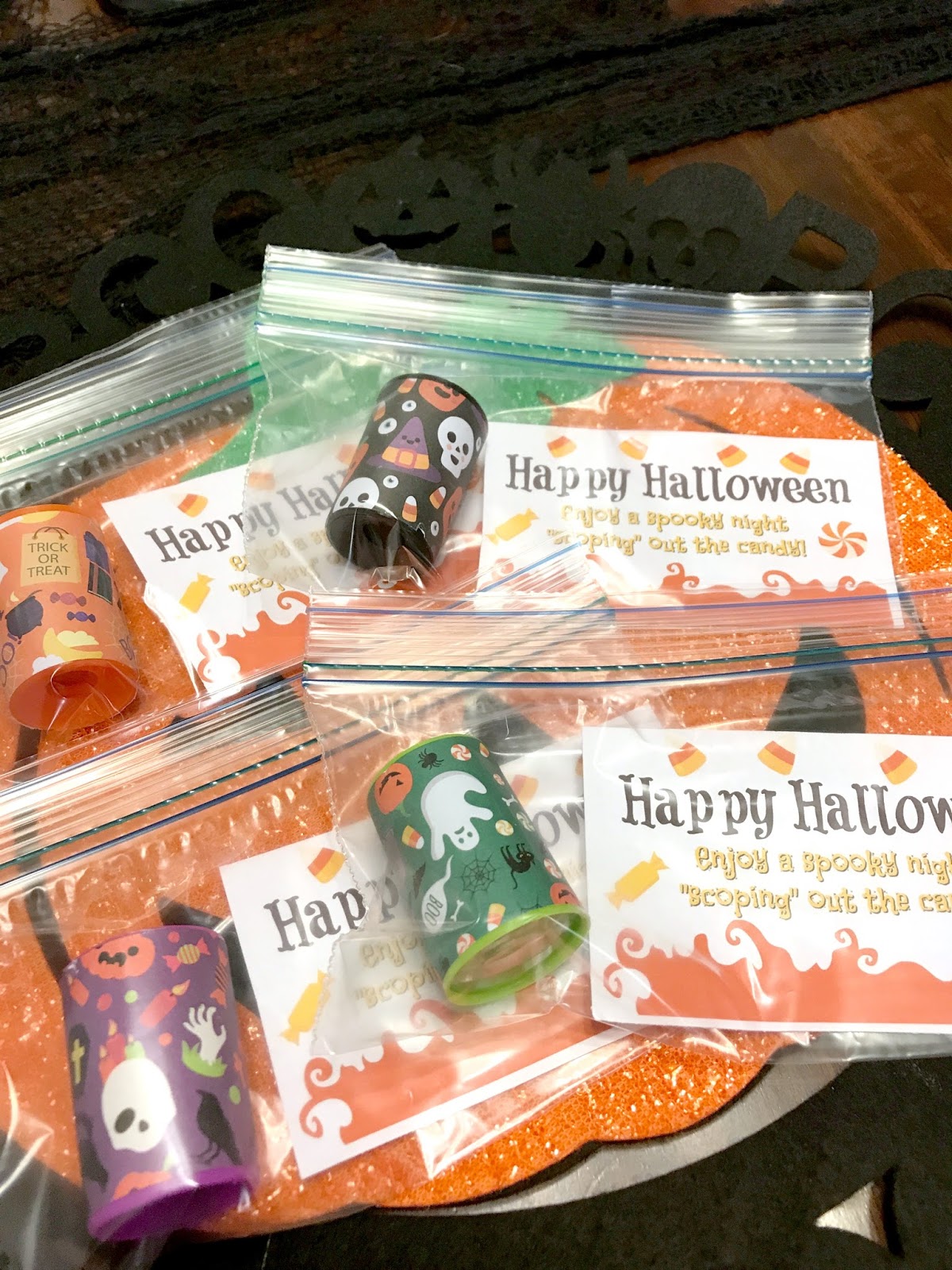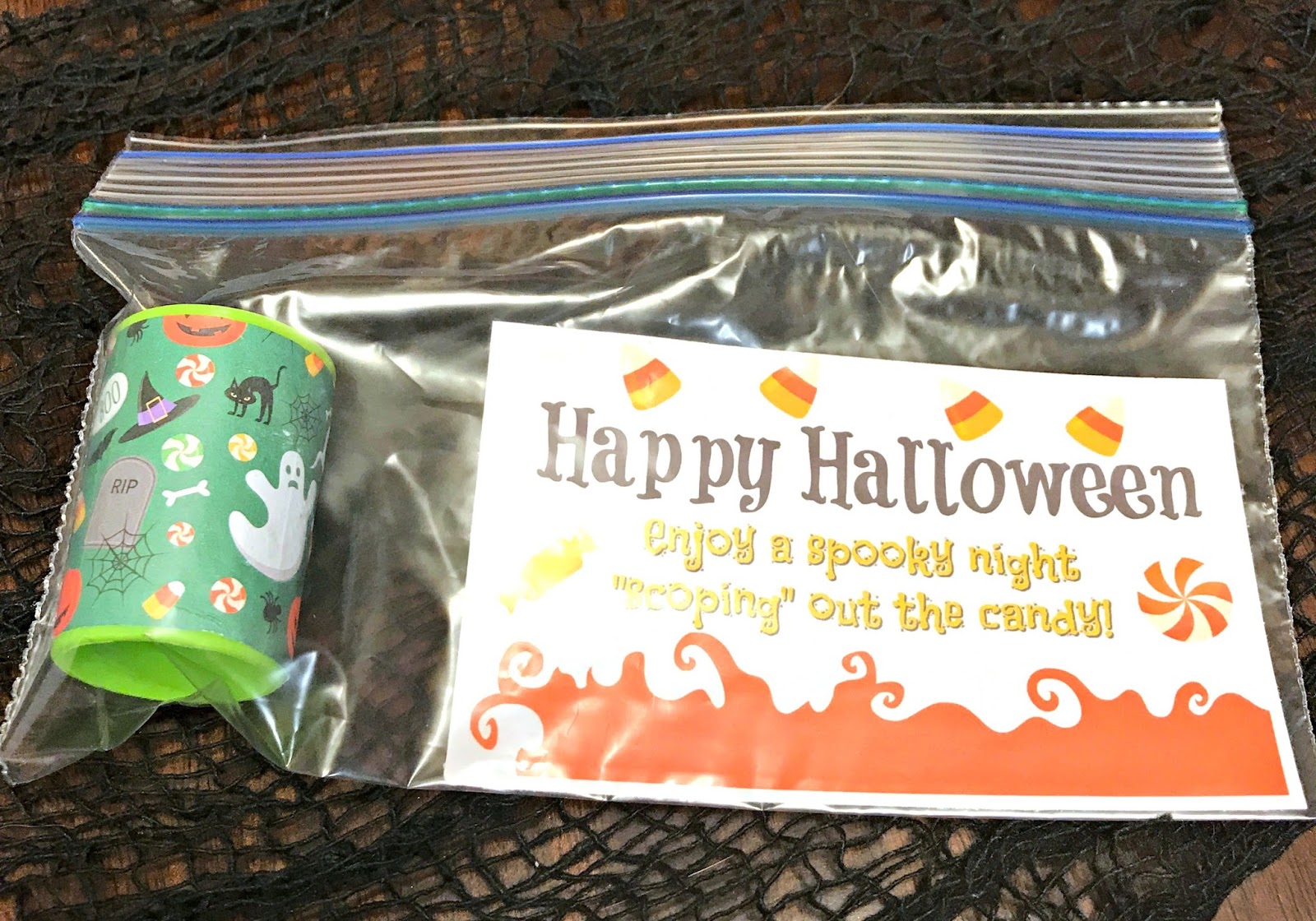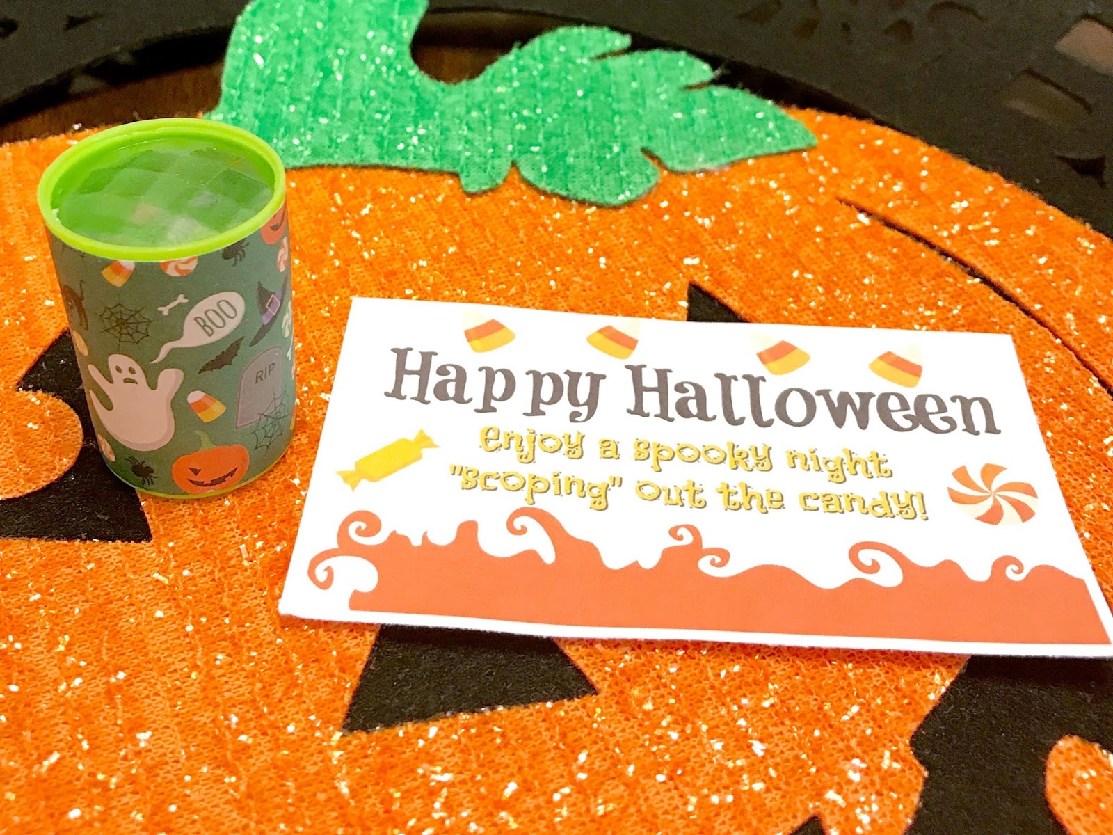 My son was really excited to share this fun little treats with his class. I had to explain the play on words and then he laughed a ton! He told me that all his friends will definitely be “scoping out the candy” tonight and that he was so excited for the day.