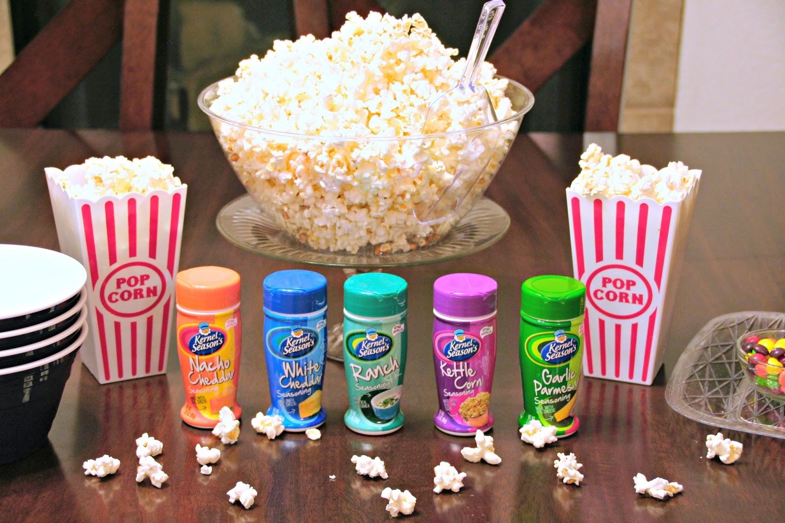 I wanted to have a variety of toppings to create a salty and sweet combination. I purchased some seasoning mixes for popcorn and placed those in front of the popcorn bowl. I also grabbed some individual bowls and set those out for each person to make their own special popcorn concoction.
