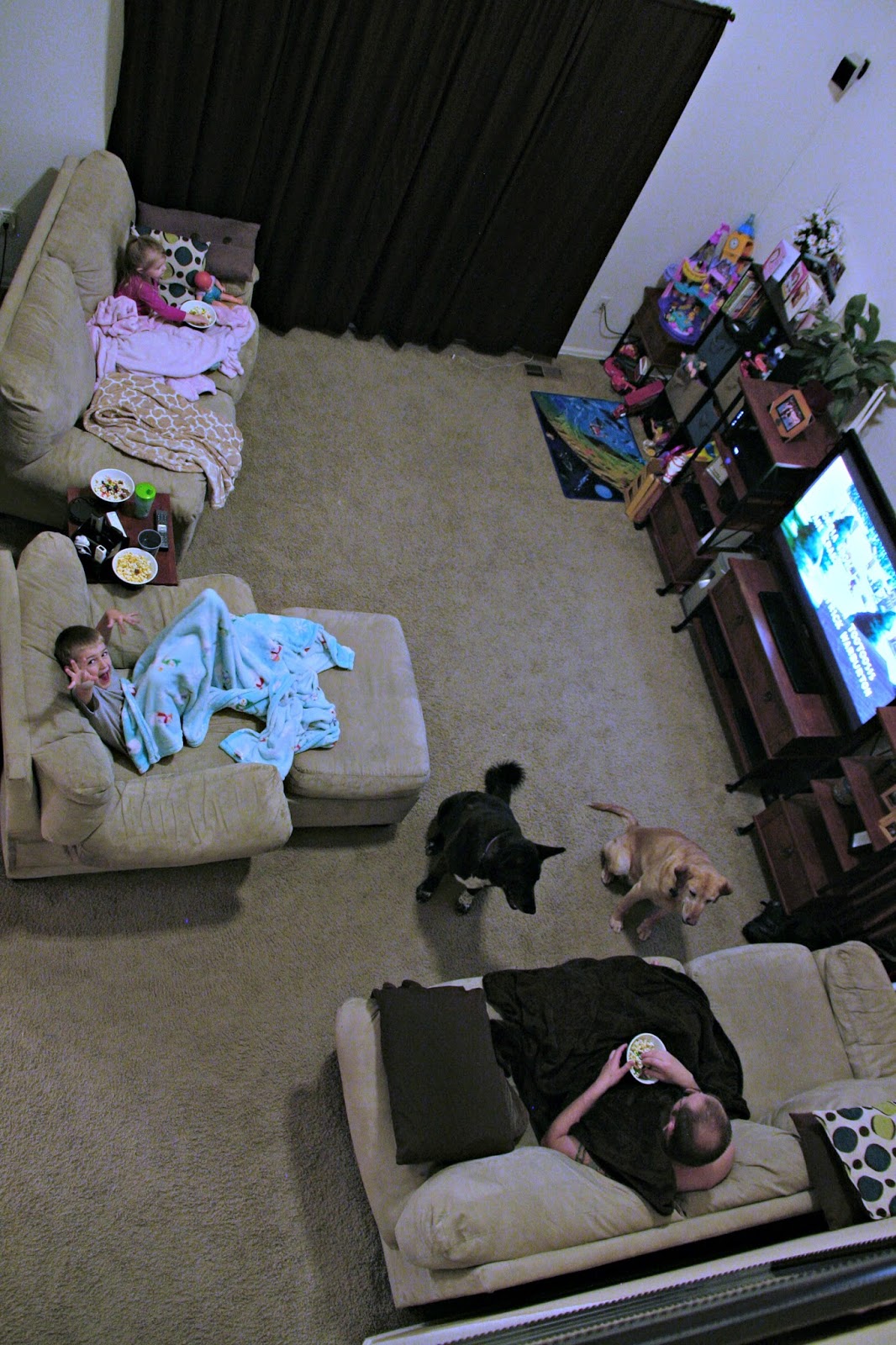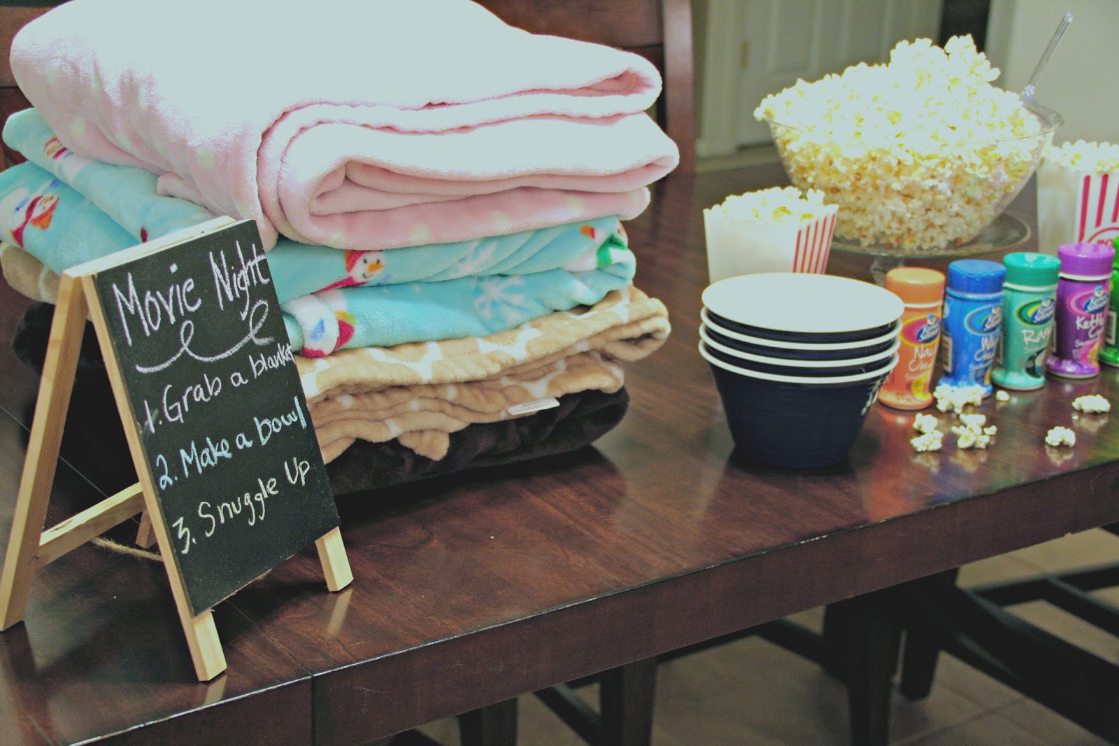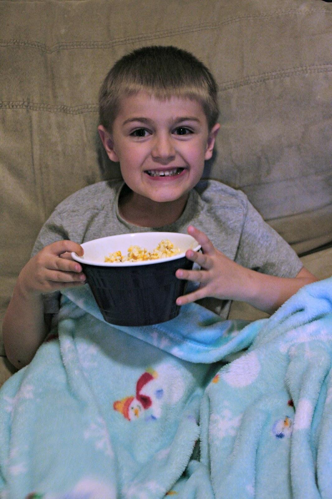 We sat down with our blankets and popcorn mixes for our movie night. Everyone was snuggly warm and excited to enjoy a night together.