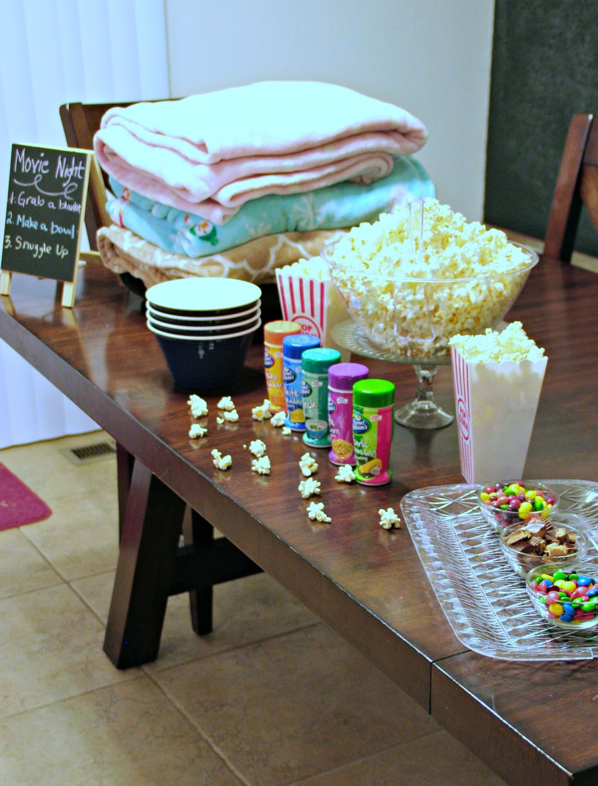 While the blankets were washing and getting snuggly fresh, I went to work setting up our movie night popcorn bar.