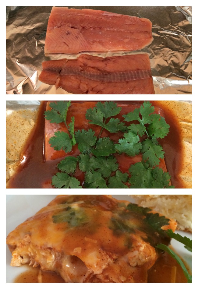 - Pour the enchilada sauce over the filet (you make want to place the foil inside a casserole dish)