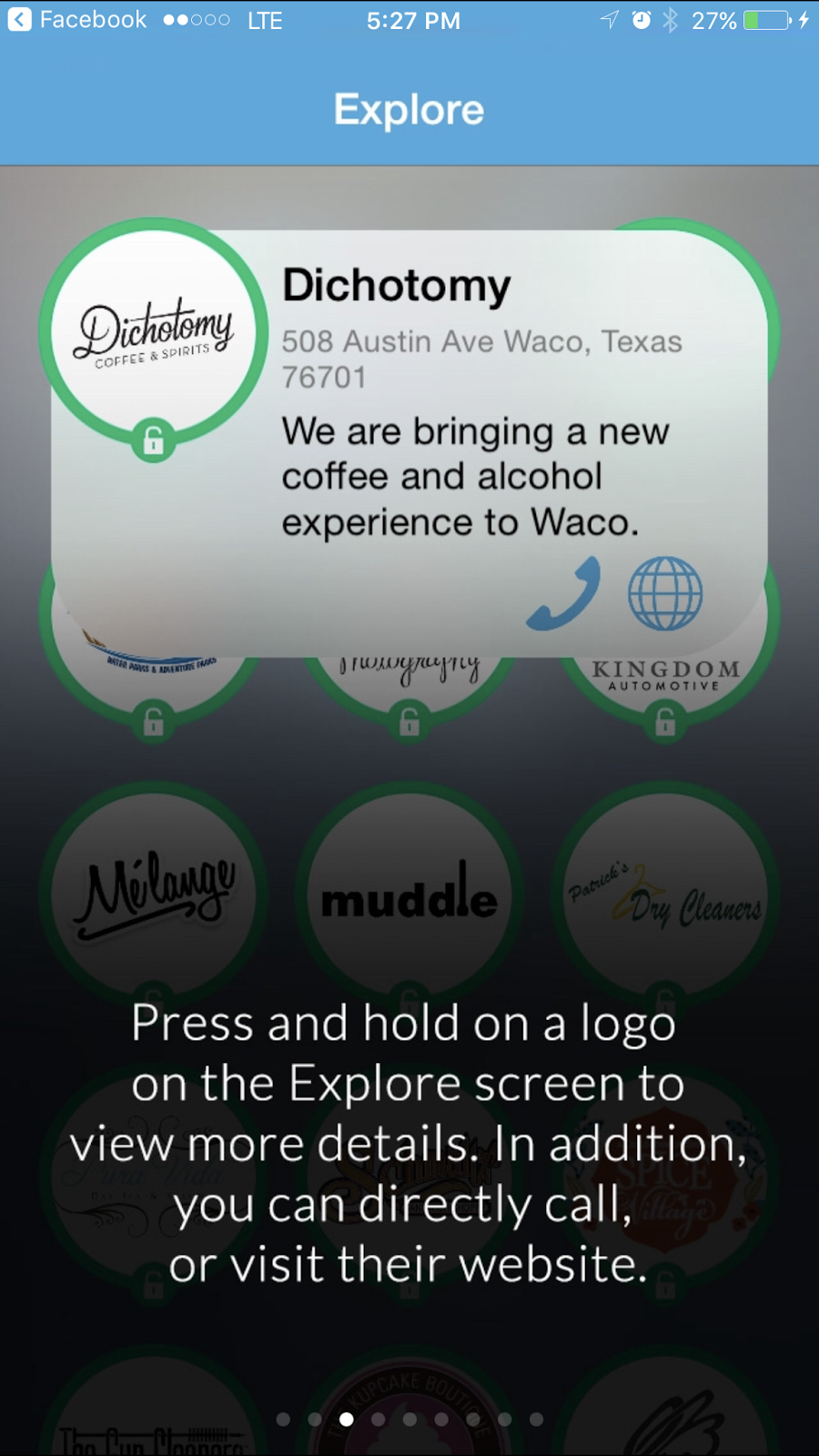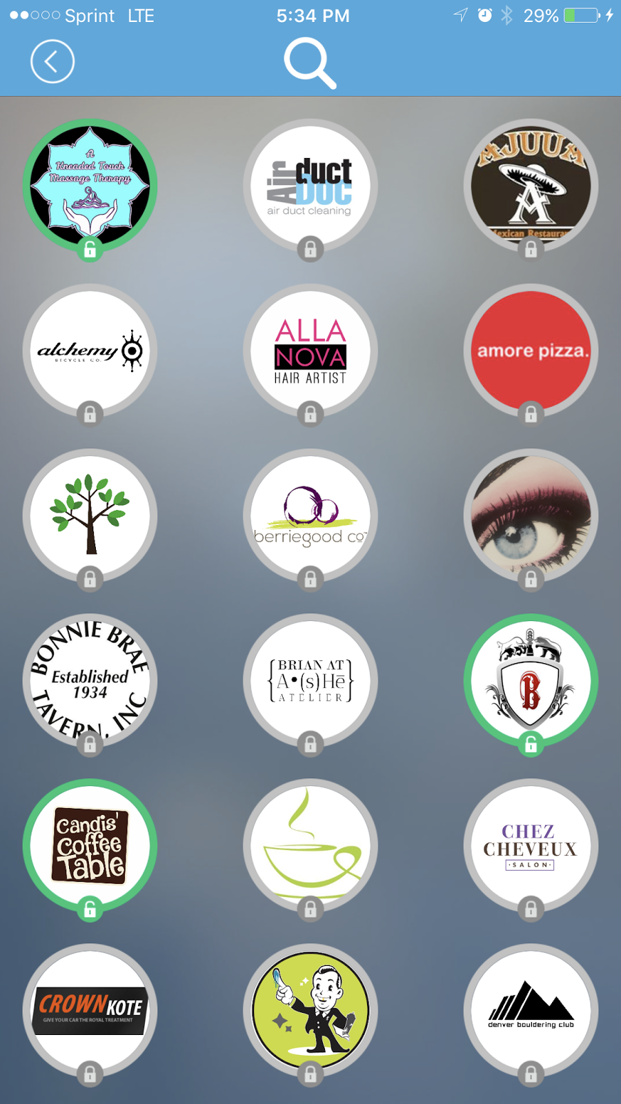 Once the tutorial was completed, I went through the local businesses that I was interested in checking out and selected them. The ones that I selected were highlighted green and also have the lock icon in the unlock position.