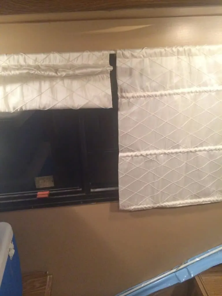 You see my wonderful amazing talented husband likes a project and I wrote about our camper renovation plans here. I am now fairly certain that we bought a camper probably owned by Walter White (holla to my Breaking Bad fans)! We have literally fixed everything you can imagine on it. We have redone the floor, new rims and tires, the electrical, a fridge, rebuilt the bathroom, the furnace, cleaned, painted, redid the cushions, made all the curtains (including these damn roman shades), made screens for every window and probably 10,000 other things that I can hardly remember.