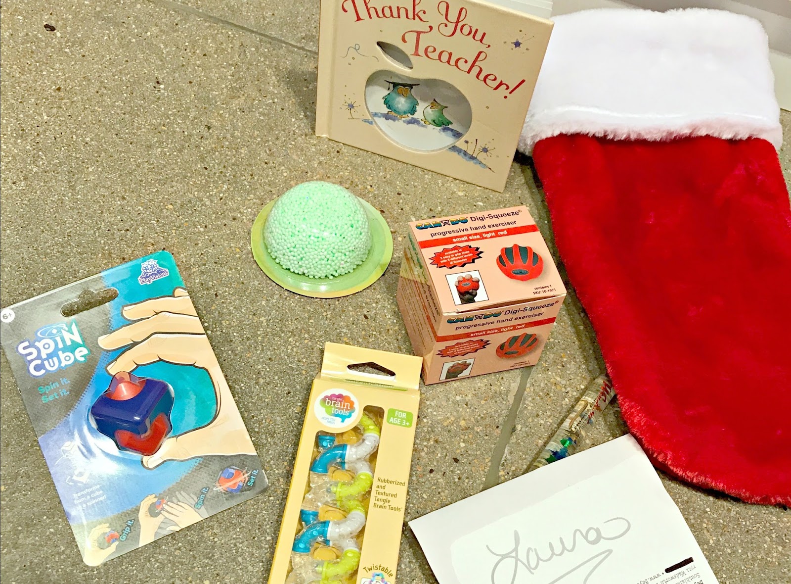 Another competition was a stocking stuffer competition. We were given $50.00 store credit to shop around and create a stocking stuffed full of items that someone would love. I chose my son’s teacher. He is in 2nd grade now and has a busy classroom full of very excitable little boys. I figured a fun “fidget stocking” would be a perfect gift for her this holiday season! I am really excited to gift it to her!