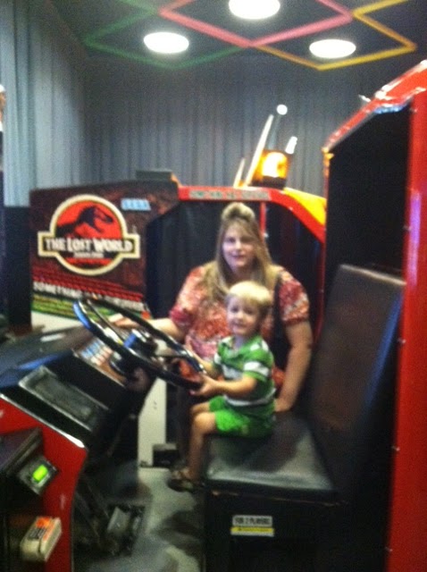 So yeah we totally did. A few weeks ago Jason and I just needed to get out of the house and do something different but fun for Eyan. So we called up his aunt and uncle and headed to Dave & Busters for some great food, games and fun! The food there is truly great and if you do this “power play combo” thing you get a game card and your food for like $20.00. So it was semi affordable. After dinner we went to the game room which was FULL of kids since we go their fairly early. Eyan was super partial to any driving games, while mommy, daddy, aunt Net & uncle Bob were concerned about earning a ton of tickets to win prizes! We had a great time and got a fantastic remote control car that we are saving for Christmas as our prize.