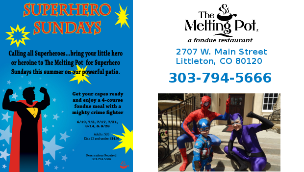 Sunday our family decided to take a little drive south and attend a fun little Superhero Sunday event at The Melting Pot in Littleton Colorado. I am so glad that we made the hour drive, because we had a wonderful time.