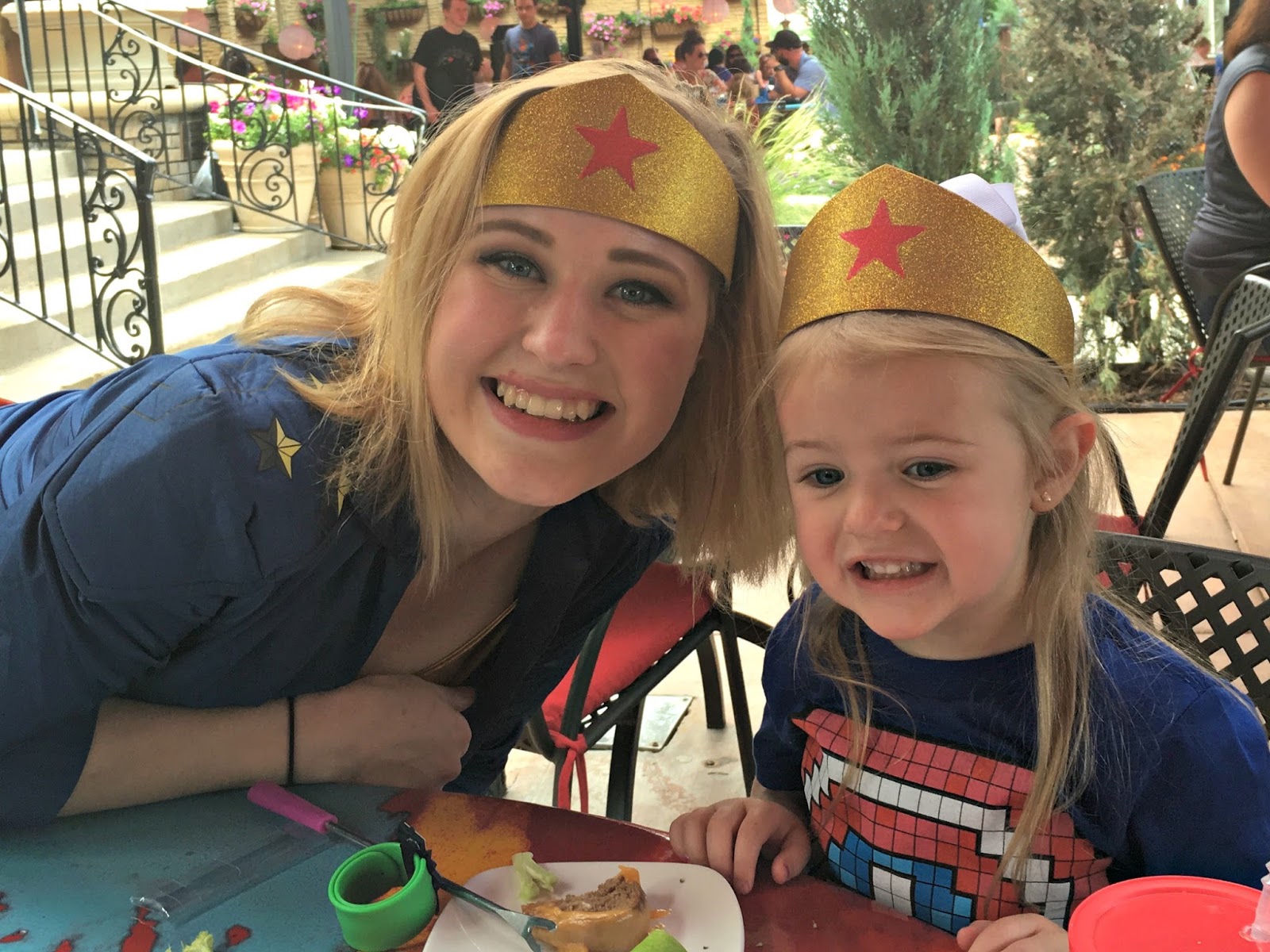 Our little guy immediately spotted Spider-Man and waited eagerly for him to come to our table. We didn’t wait long, the superhero team of Wonder Woman and Spider-Man were right over to sign autographed photos, hand out superhero bracelets and take pictures. My kids were already enjoying the day and our meal had not even started yet.