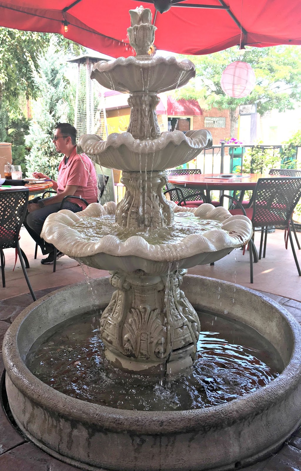 From the moment we arrived at the event, we were greeted by happy faces and people so willing to make our day special that we felt a bit like celebrities. We pulled up and they had complimentary valet parking, then we walked in through the patio to check in, they quickly seated us outside by this pretty fountain.