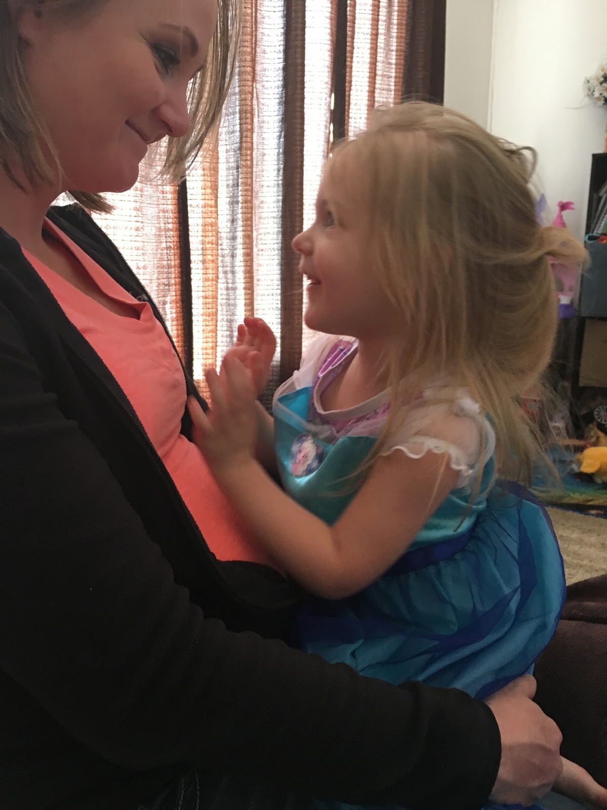 These two. My sister is expecting a baby boy in just about 10 weeks! We are all on pins and needles preparing for his arrival. The other night, the princess looked down my sisters shirt and when asked what she was doing she said “looking for the baby”. My sister told her that he is not in her boobies and we all started laughing!