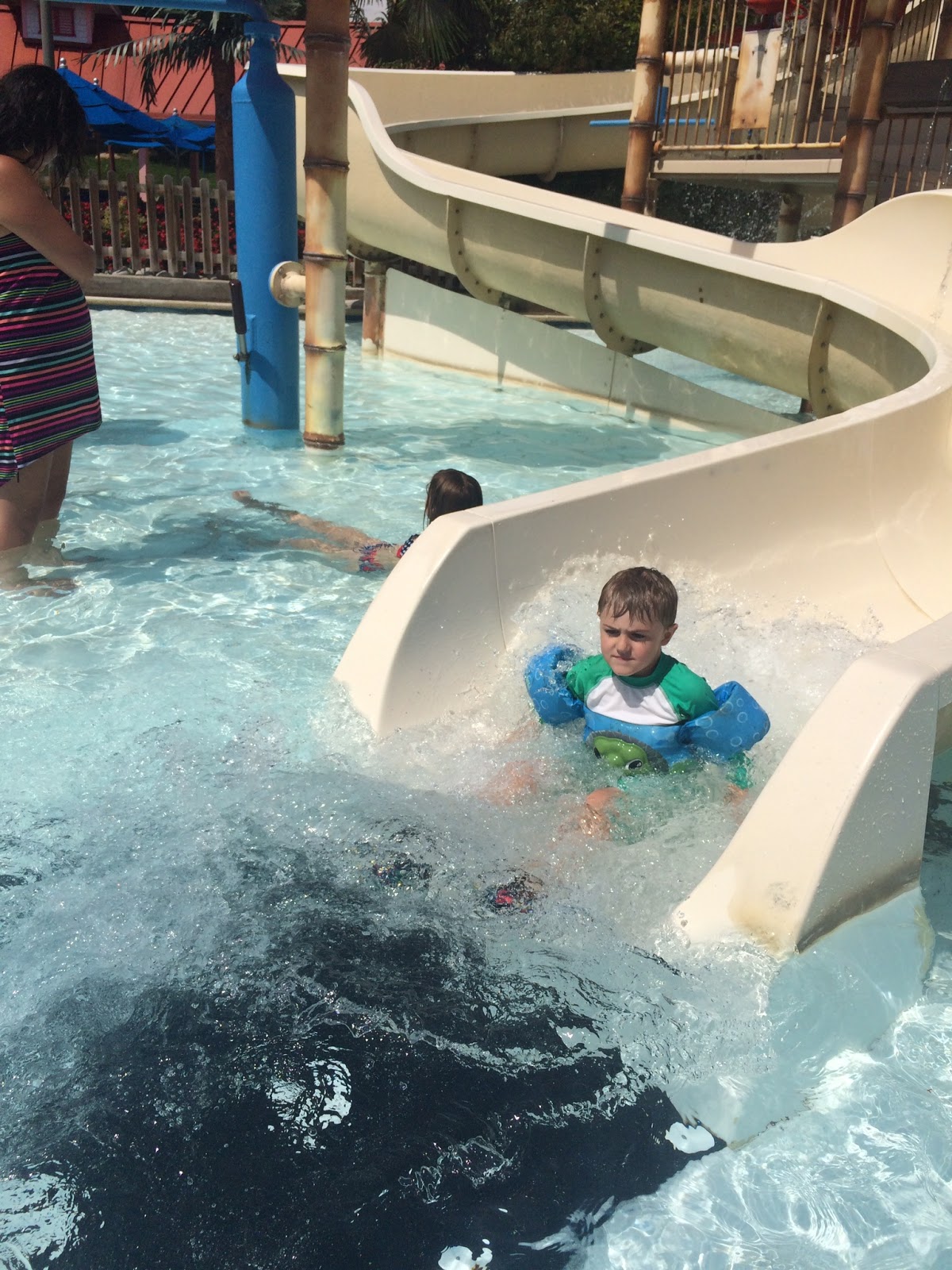 The park has grown and includes some great family tube rides and basically an area for everyone. They have two large kiddie areas complete with slides and toys galore. My son could have easily spent the entire day playing around in Wally World and the Caribbean Family Adventure areas. They were awesome and I loved that the slides were just perfect for him. Also Water World offers free rental of child safety gear. I had forgotten our “water wings” at home and when we went to guest services the amazing staff just handed me one and said that we could return it to any guest services when we were finished.
