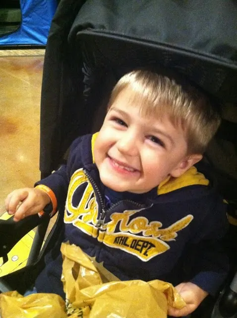 Eating LOADS of candy! We had a great time at Bass Pro and apparently they were handing out candy as well…so naturally my little sweet tooth boy was all in
