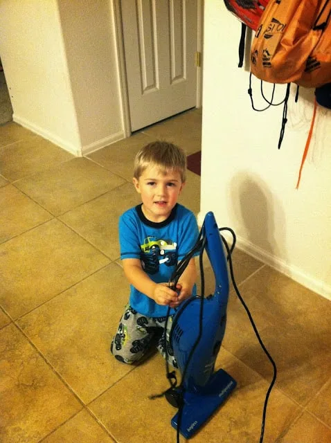 Cleaning! This boy loves vacuuming. No like I seriously cannot get into the closet with the vacuum without him getting very excited about the option of cleaning our floors. Needless to say my floors have never had so much lovin!