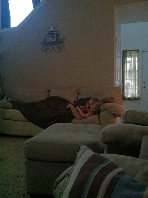 That looks like my family! Except we're tired enough that there are toys all over the floor too....