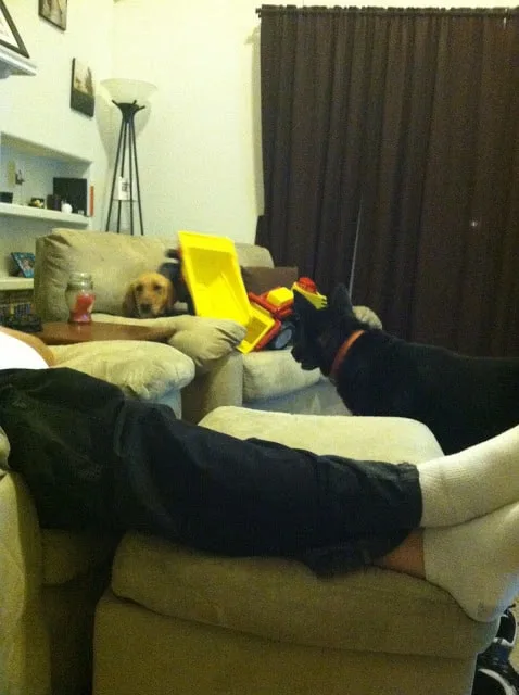| See that dog under those trucks, she just takes whatever Eyan puts her through. Ugh poor pups. |