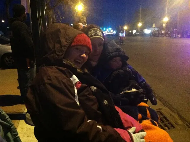| Waiting for the Festival of Lights Parade…cold and super cold, but happy |
